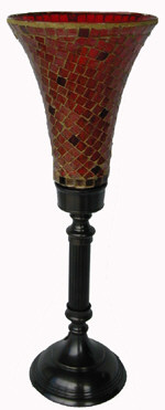Flute shape red and gold candle holder with antique bronze stand RI-31069-RD/Flute