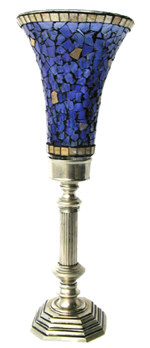 Brass candle holder in pewter finish with blue glass RI-3062-BC