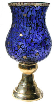 Bulb shape Blue & gold candle holder in pewter finish RI-30211NI/Blue Bulb