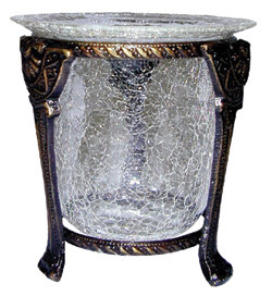 U shaped Crackle glass vase with bronze stand GMI 95210-CL-CR
