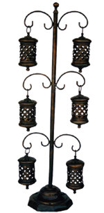 GMI-6-BRZ Bronze stand with six hanging T-light lanterns