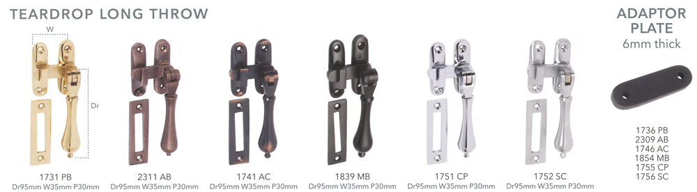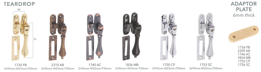 Casement Fastener- Short Throw- Tear Drop- Chrome Plate