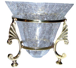 5" Round crackle glass bell cone and brass stand AI-18925-S